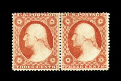 29 og 26 image#26, 3c Dull red, Ty. II, horizontal pair, brilliantly fresh, rich color and impression on unusually bright paper, well centered, full o.g., lightly hinged, very fine. (Image) 170.00