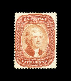 33 og 30 image#30, 5c Orange brown, Ty. II, an incredibly fresh and handsome mint example, possessing spectacularly intense color and impression on crisp paper, exceptionally well centered and margined for the issue, pristine full o.g., very lightly hinged, extremely fine; a stamp with tremendous overall eye appeal; 1996 PF certificate. (Image) 1,150.00