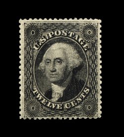 38 og 36b image#36b, 12c Black, plate III, brilliantly fresh mint single, possessing an uncommon overall brilliance, with strikingly intense color and impression, particularly well centered as well, with uncharacteristically large margins, pristine full o.g. that has been only faintly hinged, very fine and extraordinarily choice; seldom seen both in this premium condition and with full original gum; 1992 PF certificate. (Image) 750.00