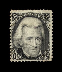 61 og 73 image#73, 2c Black, gem mint example of this notoriously difficult stamp, featuring near perfect centering amid uncharacteristically large margins, prooflike color and impression on fresh crisp paper, full o.g., lightly hinged, extremely fine; a highly desirable stamp in such premium condition; 1996 PF certificate. (Image) 350.00