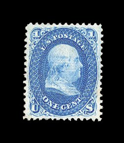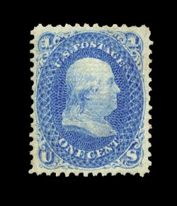 70 og 86 image#86, 1c Blue, "E" grill, an incredibly choice mint example of this very scarce grilled stamp, possessing overall physical qualities that are difficult to find on any of the grilled issues, but particularly so for this value, featuring a magnificent overall freshness, with warm rich color and a strong impression on immaculate paper, wonderfully well centered within large margins, pristine full o.g. that has been very lightly hinged, extremely fine overall; a true condition rarity; 1997 PF certificate. (Image) 2,750.00