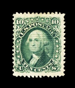 72 og 89 image#89, 10c Green, "E" grill, a magnificently fresh and bright example of a stamp that is missing in even the most advanced collections of mint United States stamps, possessing strikingly intense color in a deep shade, plus its impression is razor-sharp on bright crisp paper, quite well centered amid uncharacteristically large margins, even its reverse is uncommonly choice, featuring especially clean full o.g. that has been only very lightly hinged, very fine; 1997 PF certificate. (Image) 5,000.00