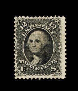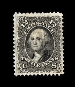 73 ng 90 image#90, 12c Black, "E" grill, unused, regummed, especially deep color and a strong impression, fairly well centered, small central repair, nearly very fine appearance for this rare unused stamp. (Image) 2,000.00