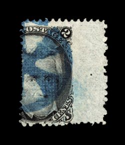 69 ng 85B image#85B, 2c Black, "Z" grill, a phenomenal quality unused example of this stamp, which is not only one of the rarest of all the grilled issues, but is widely regarded as one of the most difficult to obtain in premium quality, possessing near perfect centering amid gigantic margins which would be impressive for any stamp of the era, but are virtually unheard of on a "Z" grill issue, strong color in an intense shade, excellent easily identifiable grill impression, an extremely fine gem; we believe this spectacular stamp has no equal in terms of its centering and size of margins; 1976 and 1994 PF certificates; ex-Golin. (Image) 3,500.00
