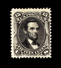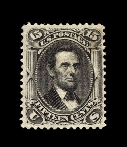 90 og 108 image#108, 15c Black re-issue, fresh and crisp mint example of this value, truly prooflike color and impression on bright paper, rather well centered, particularly when compared to the vast majority of known copies, full o.g., relatively lightly hinged, very fine; only 397 were issued and a surprisingly small number of surviving examples still retain their original gum; 1998 PF certificate. (Image) 4,250.00