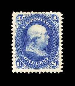 95 og 115 image#115, 6c Ultramarine, incredibly fresh and vibrant color, strong impression on bright paper, attractively centered, small part o.g., very fine for this always difficult value; 1998 PSE certificate. (Image) 2,750.00