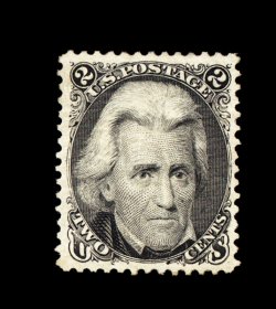 85 og 103 image#103, 2c Black re-issue, extraordinarily choice mint example of this rare and popular re-issue, possessing outstanding centering amid very large margins, deep luxuriant color and a razor-sharp impression on bright paper, full o.g., relatively lightly hinged, extremely fine gem; among the finest centered original gum examples available of the 979 issued; 1998 PF certificate. (Image) 3,250.00