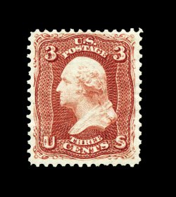 86 og 104 image#104, 3c Brown red re-issue, marvelously fresh and crisp mint example, featuring prooflike color and impression on especially bright paper, well centered, full o.g., very fine; a handsome example of this rarity of which only 465 were issued; 1997 PF certificate. (Image) 3,500.00