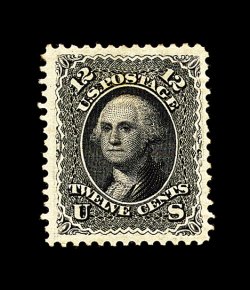 89 og 107 image#107, 12c Black re-issue, a magnificent quality mint example, easily being one of the very finest of the 389 issued still retaining its full original gum, as this impressive stamp features not only outstanding centering within extravagantly large margins, but it is remarkably fresh as well, with intense "jet" black color and a well incised impression on unusually bright paper, full clean o.g. that has been lightly hinged, an extremely fine gem in every regard; the perfect stamp for the collector who is meticulously assembling a premium quality set of the 1861 re-issues; 1997 PF certificate. (Image) 4,250.00