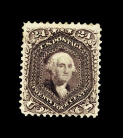 91 og 109 image#109, 24c Deep violet re-issue, an especially well centered mint example of this difficult re-issue, with no portion of its design being impinged by its perforations (a seldom occurrence on this value), deep luxuriant color and a well incised impression, full o.g., lightly hinged, a single faint stain spot in top left margin of little consequence, still very fine and choice; only 346 issued; 1997 PF certificate. (Image) 5,000.00