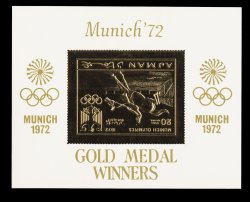 401 nh Mi Bl292var imageMichel Block #292 var., 1971 20R Olympic souvenir sheet, Gold Stamp Inverted, o.g., n.h., extremely fine. (Image) Est. 100-150