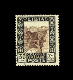605 nh 26a image#26a, 1921 30c Black and black brown, Center Inverted, strong colors, o.g., n.h., fine; a very scarce error, especially in never hinged condition; signed A. Diena and accompanied by 1985 E. Diena and 1986 Raybaudi certificates (Sassone #27c; L4,500,000). (Image) for hinged 1,250.00