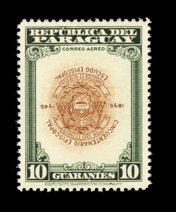 645 nh C175 var. image#C175 var., 1948 10G Coat of Arms air post, Center Inverted, quite fresh, o.g., n.h., very fine; issued in 1948, this error was not discovered until nearly 50 years later in 1997, where 25 examples were found, and to our knowledge those are the only existing copies. (Image) Est. 750-1,000
