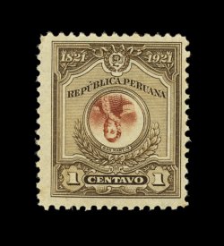 650 og 222a image#222a, 1921 1c Olive brown and red brown San Martin, Center Inverted, rich colors, o.g., barest trace of hinging (if any), very fine and scarce; 1992 APS certificate (Michel #183I; DM 1,100). (Image) 350.00
