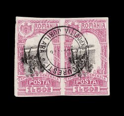 656 O 204a var image#204a var., 1906 1.50L King Carol I imperforate, Center Inverted, horizontal pair, full margins all around, Bucharest Exposition c.d.s., very fine (Michel #205 var.). (Image) Est. 150-200