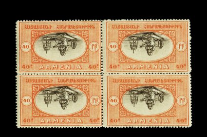 421 nhbl Yv 98 var imageYvert #98 var., 1920 40R Orange and black, Center Inverted, mint block of four, bright colors, o.g., n.h., fine-very fine. (Image) Est. 300-400