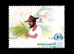425 nh 371 var. image#371 var., 1990 10t U.N. Conference, Blue Inscriptions Inverted, with green country name and value also shifted, o.g., n.h., very fine; it is now believed that the blue was correctly printed and the other colors printed inverted; listed but unpriced in Stanley Gibbons (S.G. #359a). (Image) Est. 200-300