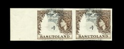 427 nh 72 var image#72 var., 1962 1/2c Dark brown and gray imperforate, Center Inverted, left sheet-margin horizontal pair, other margins also large, o.g., n.h., extremely fine; less than thirty pairs exist from the single pane of sixty (S.G. # 69a var.). (Image) Est. 400-500