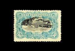 428 og 18a image#18a, 1895 10c Greenish blue and black, Center Inverted, strong colors, o.g., very fine; not only is this inverted center seldom offered, but this particular copy has a most unusual perforation variety which we have never seen before, the stamp has the normal perf. 14 holes all around except for the left half of the top and bottom rows, which are perforated 12, probably unique with this "compound" perforation; signed H. Bloch and accompanied by his 1981 Friedl certificate (not noting the perf. variety) (Michel #21k; E2,200). (Image) 1,850.00+
