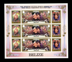 430 nh 833 var image#833 var., 1986 Wedding strip of three, Inscriptions Inverted, three such strips in a sheetlet of nine (three strips) with the marginal inscriptions of the sheetlet also inverted, o.g., n.h., very fine (S.G. #941-43 var.). (Image) Est. 200-300