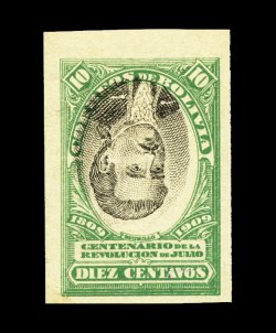 431 nh 79 var image#79 var., 1909 10c Murillo imperforate, Center Inverted, large margins all around, o.g., n.h., extremely fine; while the perforated inverted centers are relatively common, the imperforate varieties are quite elusive; signed Galvez and accompanied by a 1995 APS certificate. (Image) Est. 500-750