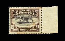 434 og C6 var image#C6 var., 1924 2b Black brown and black air post, Center Inverted, right margin single, o.g., n.h., light toned spots and short perf at left, very fine appearance; only 25 issued; signed Sanabria and accompanied by a 1994 APS certificate (Michel #135MK). (Image) Michel 5,000DM