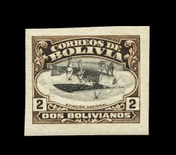 435 nh C6 var image#C6 var., 1924 2b Black brown and black air post imperforate, Center Inverted, huge margins all around (probably a sheet margin at bottom), strong rich colors, o.g., n.h., extremely fine; a very rare airmail stamp, as only 25 were printed (Michel #135MK). (Image) Michel for hinged 5,000DM
