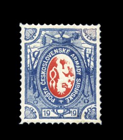 492 og 4 var image#4 var., 1919 (25k) Blue and rose, Center Inverted, another mint example of this very elusive error, excellent centering, o.g., just a faint trace of discoloration at top right, otherwise very fine (Michel #7 var.). (Image) Est. 400-500
