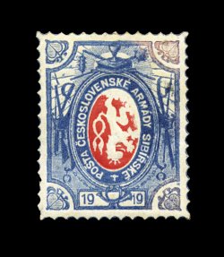 491 og 4 var. image#4 var., 1919 (25k) Blue and rose, Center Inverted, perfectly centered, wonderfully fresh colors on bright white paper, o.g., extremely fine; a rare invert which is not listed in Scott or Michel; signed Gilbert (Michel #7 var.). (Image) Est. 750-1,000
