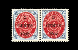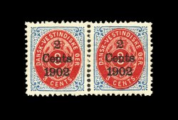 498 nh 27, 27a image#27, 27a, 1902 "2 Cents 1902" Surcharge on 3c Blue and lake, Normal and Inverted Frames, horizontal se-tenant pair, the left stamp being the inverted frame while the right stamp is the scarcer normal frame variety, excellent centering, bright rich colors, o.g., n.h., choice very fine (Facit 25, 25v). (Image) Facit 3,500SK