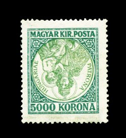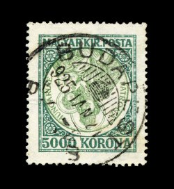 546 O 386a image#386a, 1921 5000k Madonna and Child, Center Inverted, an extraordinarily rare used example, perfectly centered within large margins, fresh color, neatly struck "Budapest/925 Jan 21" c.d.s., extremely fine; woefully undercataloged used in Scott, considering that only a tiny number of used examples are known, and it is far more rare than its mint counterpart, which carries a catalog value of $11,000.00; 1987 Schaffling certificate (Michel #379I; €15,000). (Image) 6,000.00