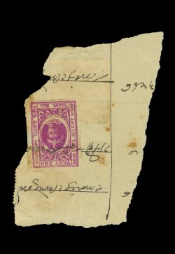 547 O K-M 151a imageKoeppel-Manners #151a, 1898 1a Red brown revenue, Center Inverted, large margins all around, rich color in the red brown shade, tied to piece by fingerprint cancel (which was a customary practice during this time period), very fine and rarely offered; illustrated in the Sellinger catalog. (Image) Est. 200-300