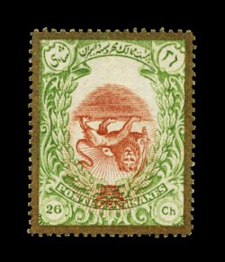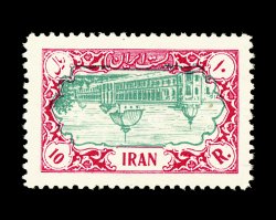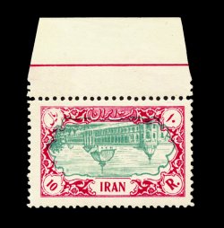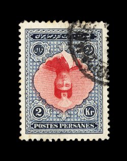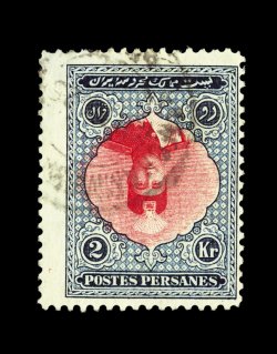 556 O 675a image#675a, 1924 2K Shah Ahmed, Center Inverted, exceptionally well centered, strong bright colors, c.d.s. in the top right corner virtually free of the central inverted vignette, extremely fine; clearly undercataloged in Scott, as only 10 examples exist (nine of which are used), and this is the finest centered example extant (all other examples we have seen are off-center); an important stamp for either an inverted centers of the world collection or an advanced collection of Iran. (Image) 2,000.00