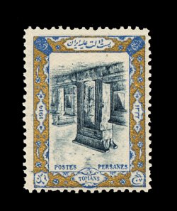 555 og 574-77 var image#574-77 var., 1915 1T-5T Ruins of Persepolis, Centers Inverted, each is also printed on both sides (normal print on other side), without gum as issued, generally well centered and with bright colors, very fine. (Image) Est. 500-750