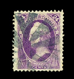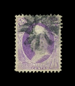 187 O 142 image#142, 24c Purple with grill, an extraordinary quality used example of one of U.S. philately's most notoriously difficult stamps to find both genuine and in premium condition, possessing several exceptional physical attributes that are rarely encountered on one single example, including being incredibly well centered within uncharacteristically large margins, plus its color is far more intense than usual, strong easily identifiable grill impression, and most importantly, this stamp is free of any of the flaws that plague most existing copies, pretty "starburst" cancel, extremely fine; the epitome of a condition rarity; 1962 and 1988 PF certificates. (Image) 6,250.00