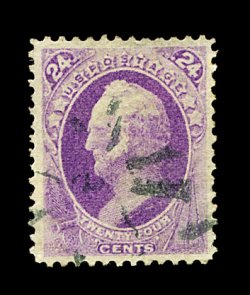 194 O 153 image#153, 24c Purple, gem used example of this always difficult Bank Note, gorgeous vibrant color in a much deeper shade than usual, outstanding centering within large margins, very lightly cancelled, extremely fine; a very pretty and eye-appealing stamp; 1989 PF certificate. (Image) 140.00