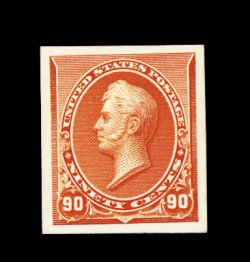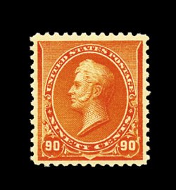257 nh 229 image#229, 90c Orange, a truly magnificent mint example of this high value, being in a quality that would be almost impossible to duplicate, featuring outstanding centering amid extravagantly large margins which are most uncharacteristic of this, additionally its color is spectacularly intense and vibrant while its impression particularly strong, pristine o.g., never hinged, an extremely fine gem in every regard; one of the finest examples we have ever seen; 2002 PF certificate for a pair, this being the left stamp. (Image) 1,350.00