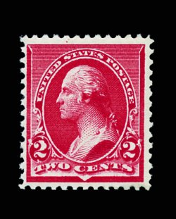 248 og 220a image#220a, 2c Carmine, cap on left "2" variety, gem mint example of this popular and scarce variety, perfectly centered within very large margins, deep vivid color, pristine o.g., lightly hinged, extremely fine; an exceedingly choice stamp. (Image) 100.00