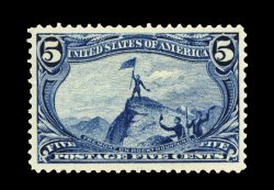 341 nh 288 image#288, 5c Trans-Mississippi, select mint single, featuring especially large margins all around and being virtually perfectly centered within them, sumptuously rich color and a well incised impression, o.g., n.h., extremely fine; 1987 PF certificate. (Image) 280.00