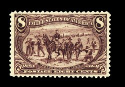 344 og 289 image#289, 8c Trans-Mississippi, intensely rich color and a highly detailed impression, well centered, o.g., l.h., extremely fine; 2000 PF certificate. (Image) 180.00