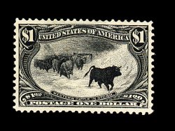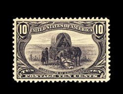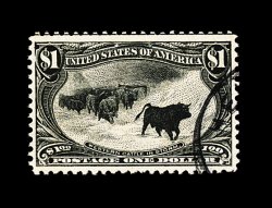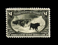 353 og 292 image#292, $1.00 Trans-Mississippi, well centered within large margins, rich luxuriant color and a razor-sharp impression, slightly disturbed o.g., choice very fine; 2000 APS certificate. (Image) 1,250.00