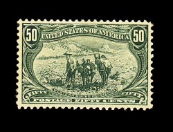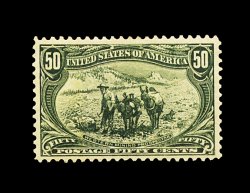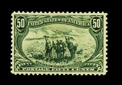 347 og 291 image#291, 50c Trans-Mississippi, exceedingly well centered, strong rich color and a crisp impression, o.g., lightly hinged, extremely fine; 2000 PF certificate. (Image) 650.00