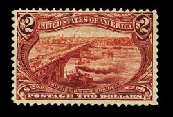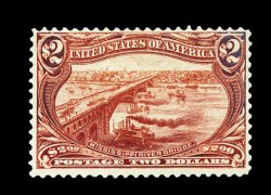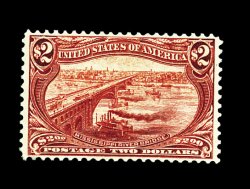 356 og 293 image#293, $2.00 Trans-Mississippi, an exceptionally handsome mint example of this always difficult commemorative, wonderfully bright and fresh, with especially rich luxuriant color and a deeply incised impression, well centered, full clean o.g., lightly hinged, choice very fine and quite choice; 1997 PF certificate. (Image) 2,100.00