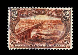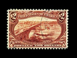 360 O 293 image#293, $2.00 Trans-Mississippi, select used example of this difficult stamp, exceptionally well centered, plus its color is far more intense and in a deeper shade than usually encountered, bright fresh paper, very light strike of a registry oval pmk., extremely fine and eye-appealing; 2000 PF certificate. (Image) 1,000.00