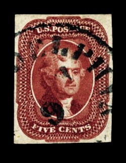 35 O 12 image#12, 5c Red brown, an especially handsome used example, with four large and wonderfully balanced margins, deep luxuriant color and impression on bright paper, neat portion of Philadelphia c.d.s., extremely fine. (Image) 1,000.00