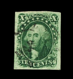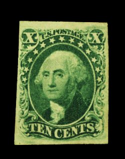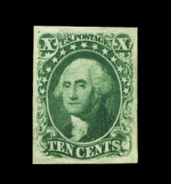 39 ng 14 image#14, 10c Green, Ty. II, a handsome unused single that possesses large margins all around, rich luxuriant color and a crisp detailed impression, extremely fine; a rare stamp in this premium quality; 2000 PF certificate. (Image) 1,800.00