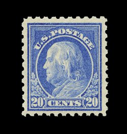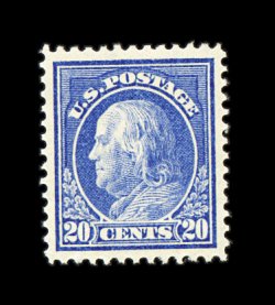 503 nh 419 image#419, 20c Ultramarine, an exciting mint example that easily qualifies as the finest Scott #419 we can ever recall having offered in our auctions, as this stamp boasts magnificent physical qualities that are seldom associated with this, including being flawlessly centered within lavishly large margins, but just as impressive is this stamp's radiant color and deeply incised impression on pristine paper, unusually even perforations all around, o.g., n.h., an extremely fine gem for the collector seeking a truly extraordinary example; 2002 PF certificate. (Image) 380.00