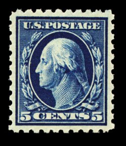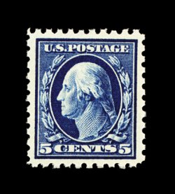 514 nh 428 image#428, 5c Blue, precisely centered, strikingly intense color and impression, uncommonly even and intact perforations all around, o.g., n.h., extremely fine; a little gem. (Image) 62.50