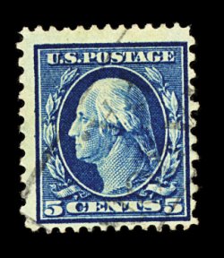 515 O 428a image#428a, 5c Blue, perforated 12 x 10, a choice used example of one of the rarest of all the Washington-Franklin compound perforation varieties, being one of few sound certified examples recorded, as nearly all of the small population of known examples has a fault, deep luxuriant color, centered just a bit to bottom right, very light and unobtrusive postmark, certainly very fine for this rarity; signed "SA" (Spencer Anderson) and accompanied by a 1980 PF certificate. (Image) 7,000.00