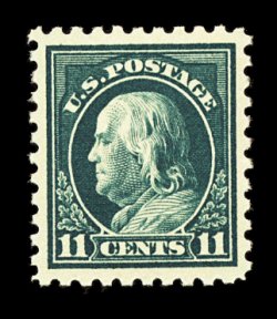 516 nh 434 image#434, 11c Dark green, flawlessly centered amid extra-large margins, prooflike color and impression, o.g., n.h., an extremely fine gem for the perfectionist. (Image) 45.00